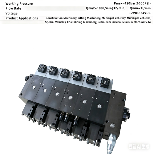 This product is a pilot-operated electro-proportional hydraulic multi-way valve, adopting a modular sectional structure and high-precision electro-proportional pilot control technology. It can accurately control the flow, direction and speed of multiple hydraulic actuators (cylinders, motors) in the hydraulic system via electrical signals, realizing stepless speed regulation for independent or combined control of multiple actions. Featuring high pressure resistance, low leakage, fast response, impact resistance and contamination resistance, it supports customization of valve section quantity, flow specifications, pilot pressure, interfaces and control methods. Widely used in construction machinery (cranes, loaders, excavators, aerial work platforms), sanitation equipment, special vehicles and other automated hydraulic systems, it is the core component for electro-hydraulic control of multi-actuator systems, supporting custom drawing and non-standard machining.